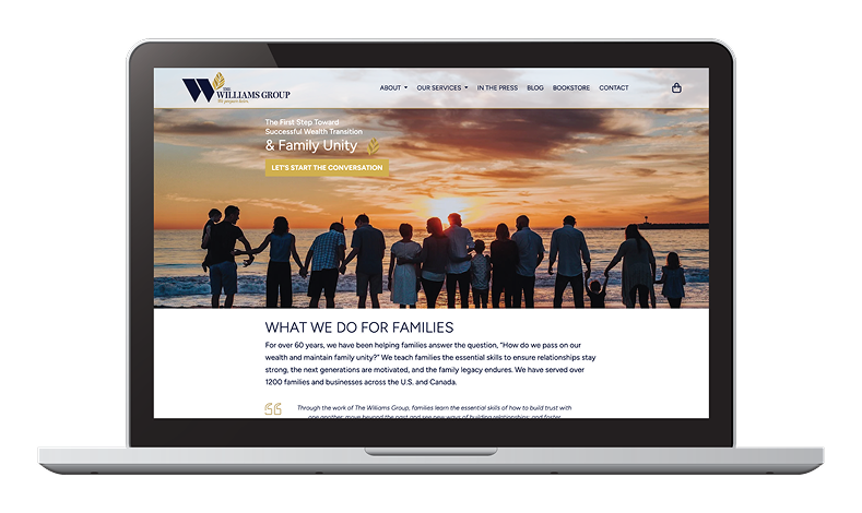 Financial services firm helping wealthy families with generational wealth needed sophisticated branding that balanced approachability with high-end positioning, plus an e-commerce website for their family education programs.